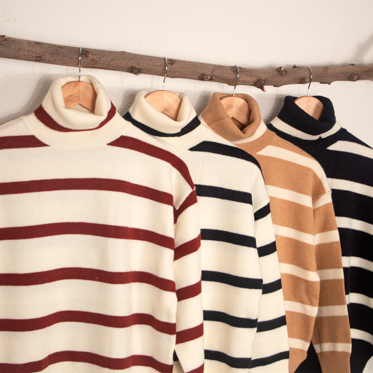 Jersey de Mujer Rayas Beige Cuello Vuelto