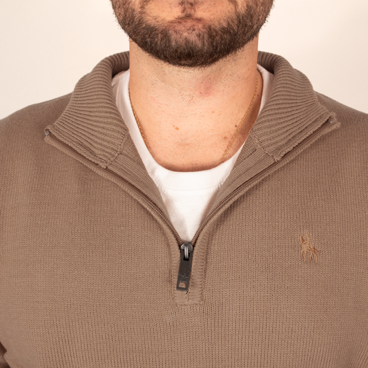 Jersey Hombre Beige Media Cremallera y Coderas