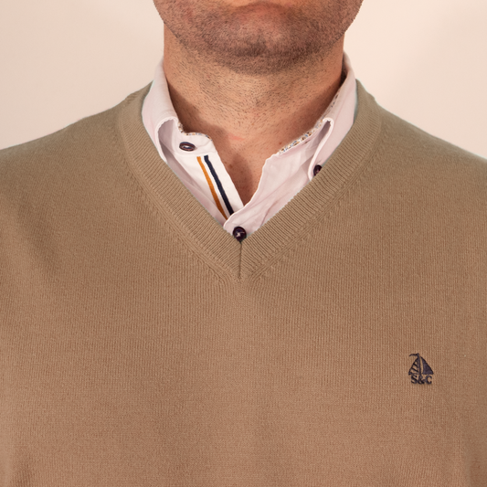 Jersey Hombre Cuello Pico Beige