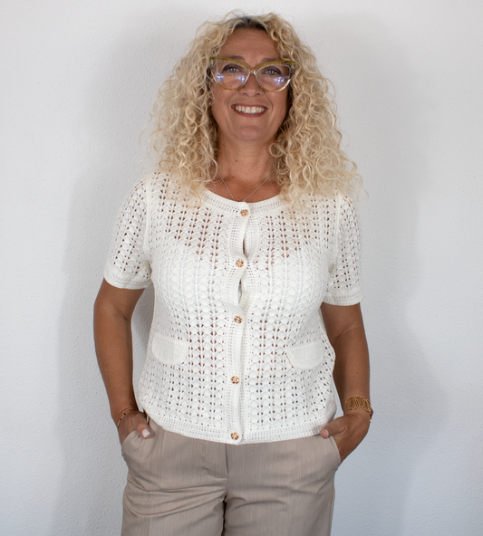 Jersey en punto calado con botones dorados