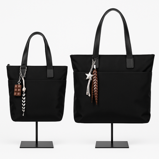 Bolso Shopper Negro Pequeño con Asas Negras y Llavero Decorativo