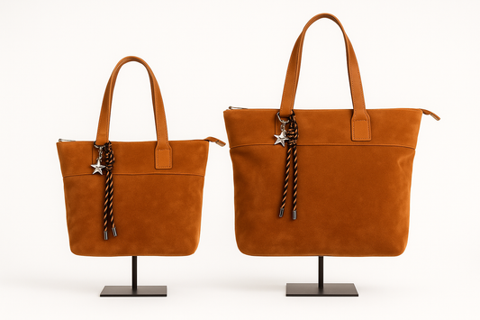 Bolso shopper camel pequeño con asas camel y llavero decorativo