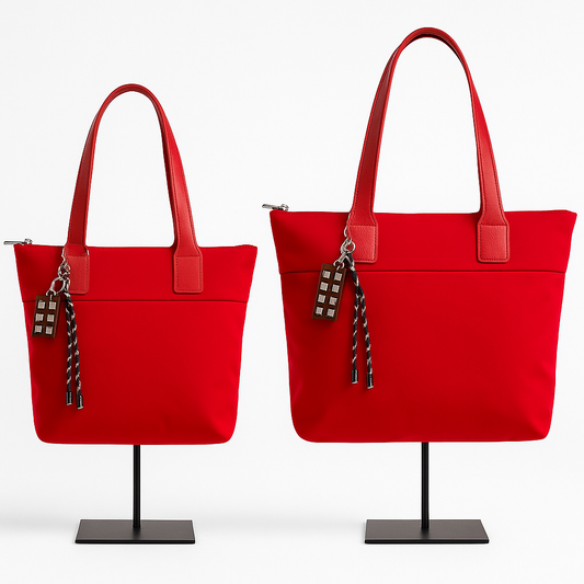 Bolso shopper rojo pequeño con asas rojas y llavero decorativo