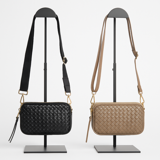 Bolso bandolera negro acolchado con efecto trenzado y cremallera dorada