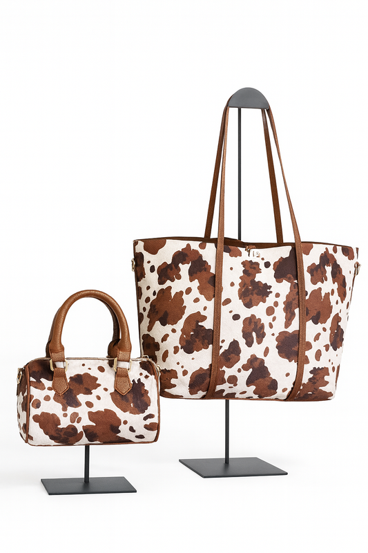 Bolso shopper estampado animal print vaca en marrón y rosa