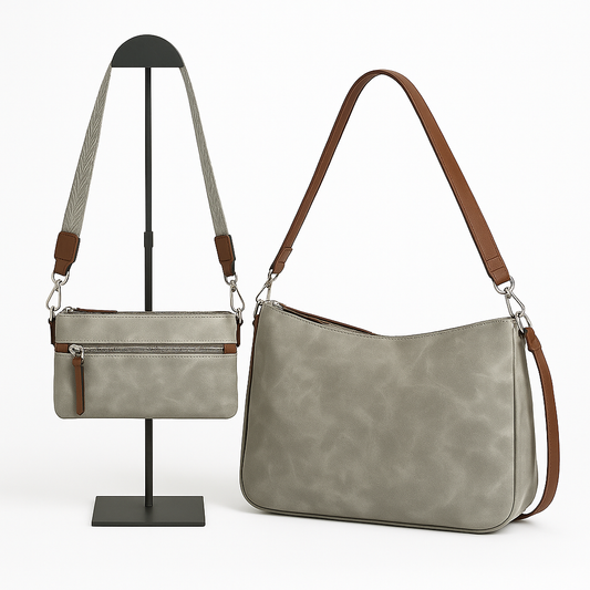 Bolso Bandolera Grande Gris con Detalles Marrones