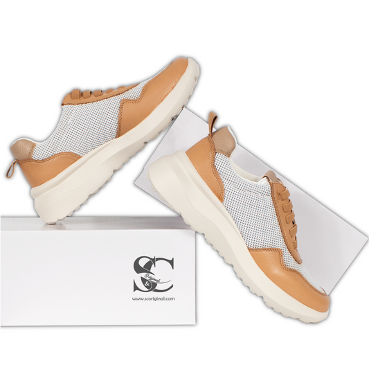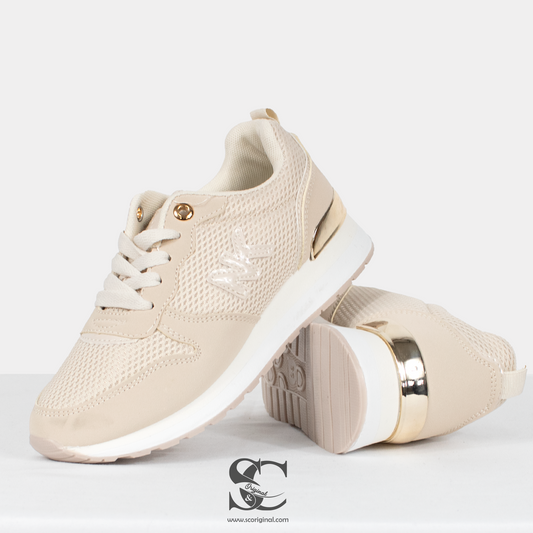 Zapatilla deportiva mujer modelo "viru" elástico ocre
