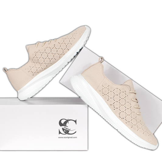Zapatilla deportiva mujer modelo "viru" floral beige