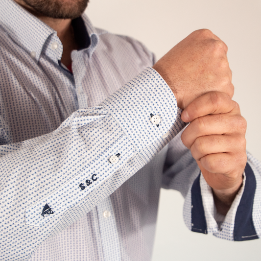 Camisa Hombre Manga Larga Estampado Cuadros Azules