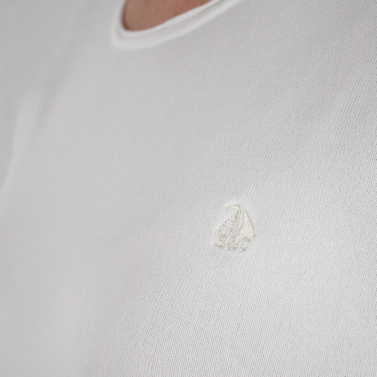 Jersey Mujer Cuello Pico Blanco Roto