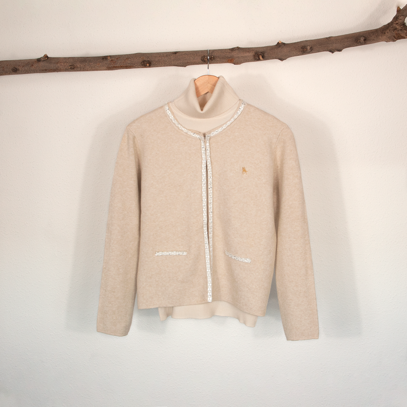 Chaqueta de Punto Beige para Mujer con Detalles en Brillo