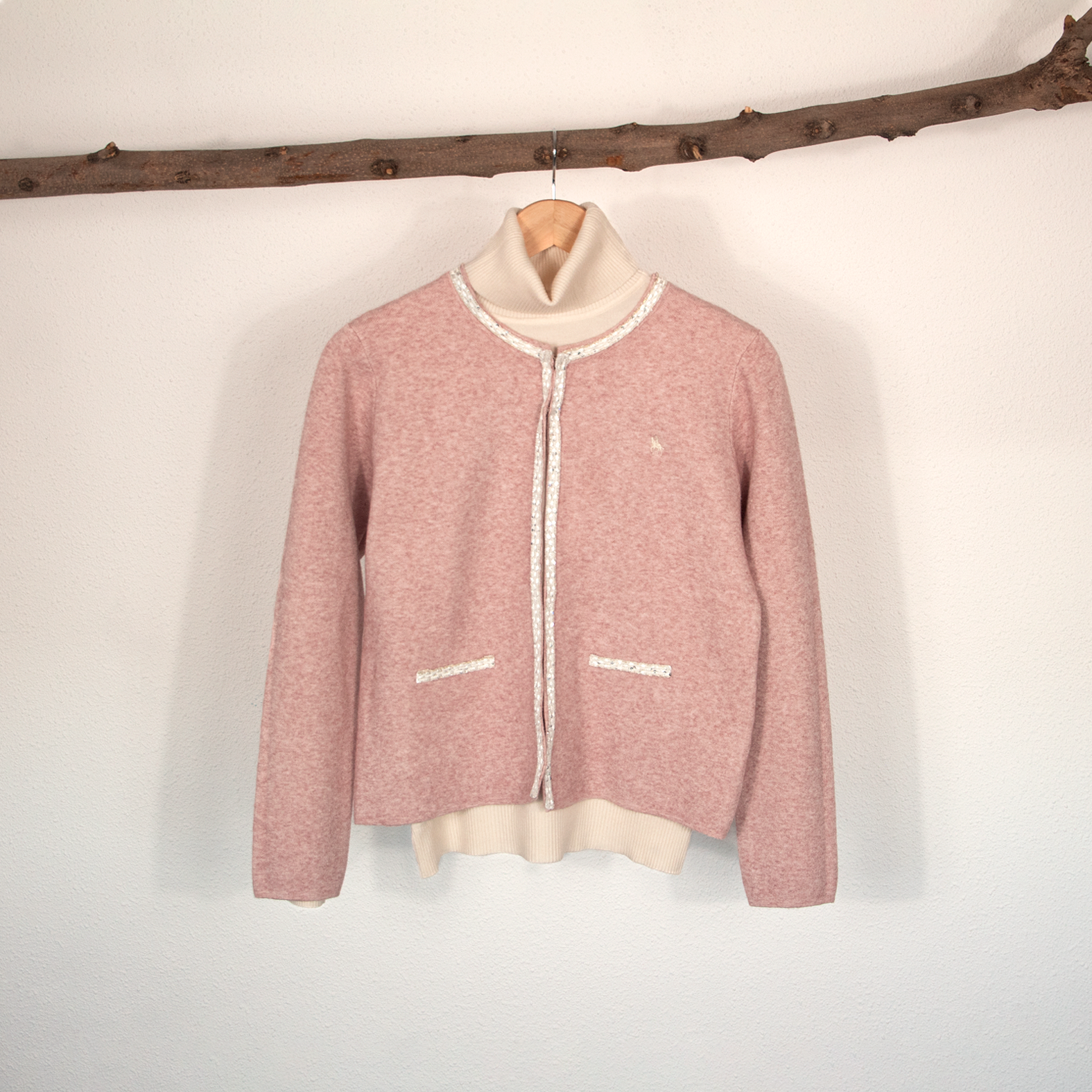 Chaqueta de Punto Rosa para Mujer con Detalles en Brillo
