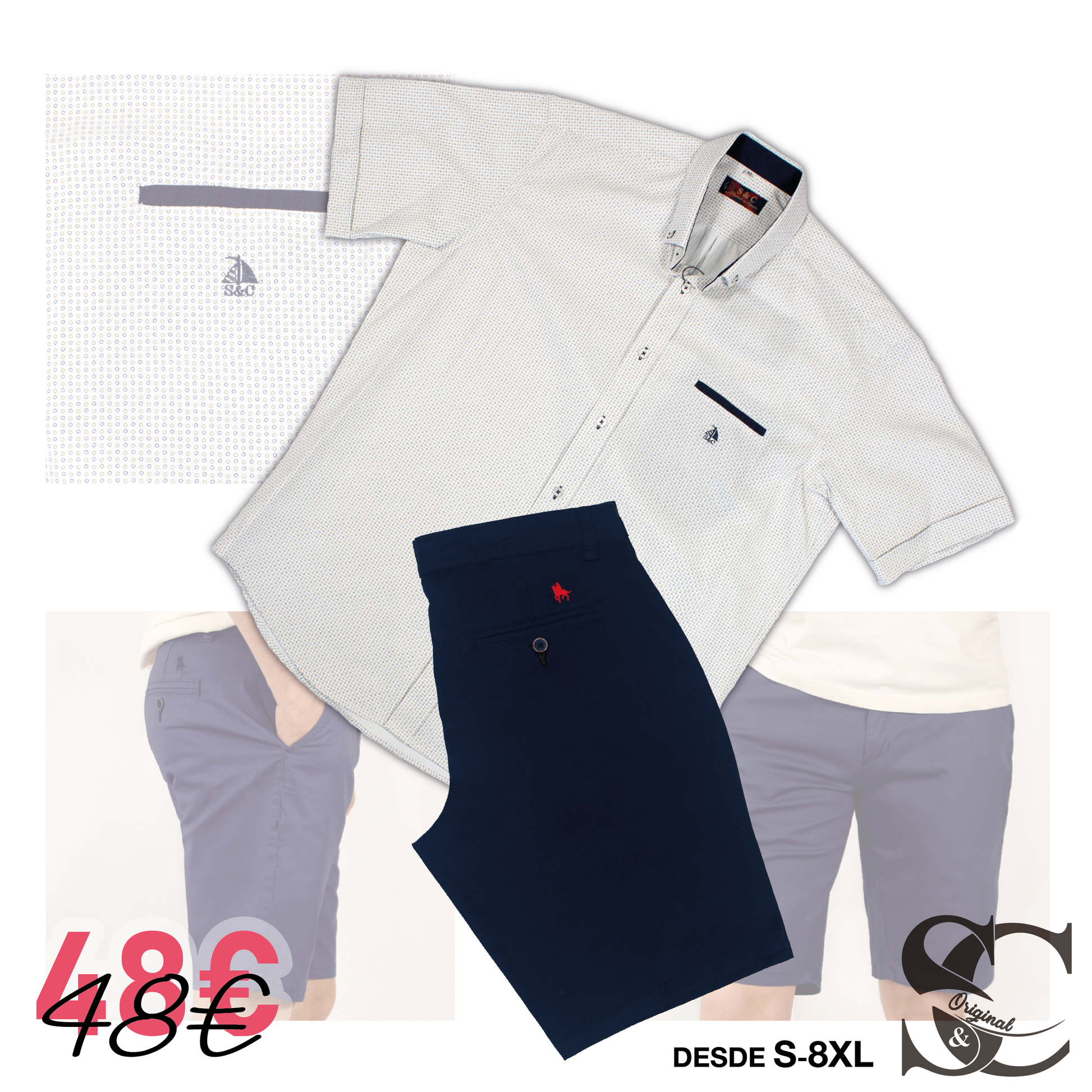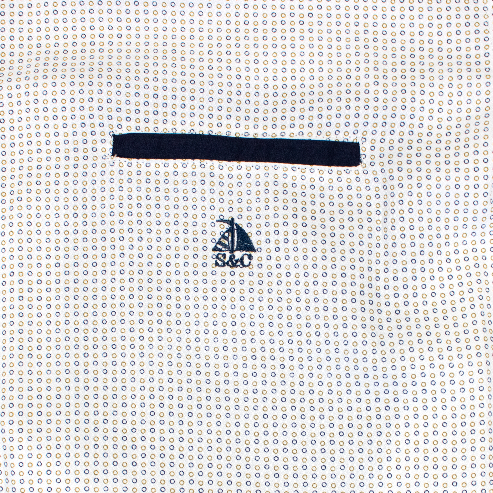 Conjunto camisa circulos amarillos y azul con bermudas marino