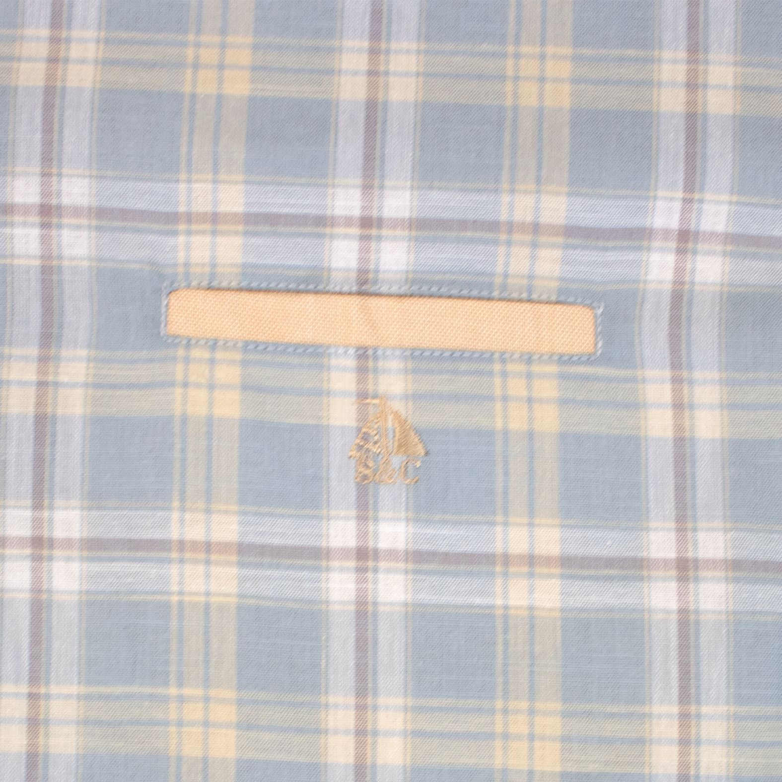Conjunto camisa rayas y cuadros azul y amarillo con bermuda blanca