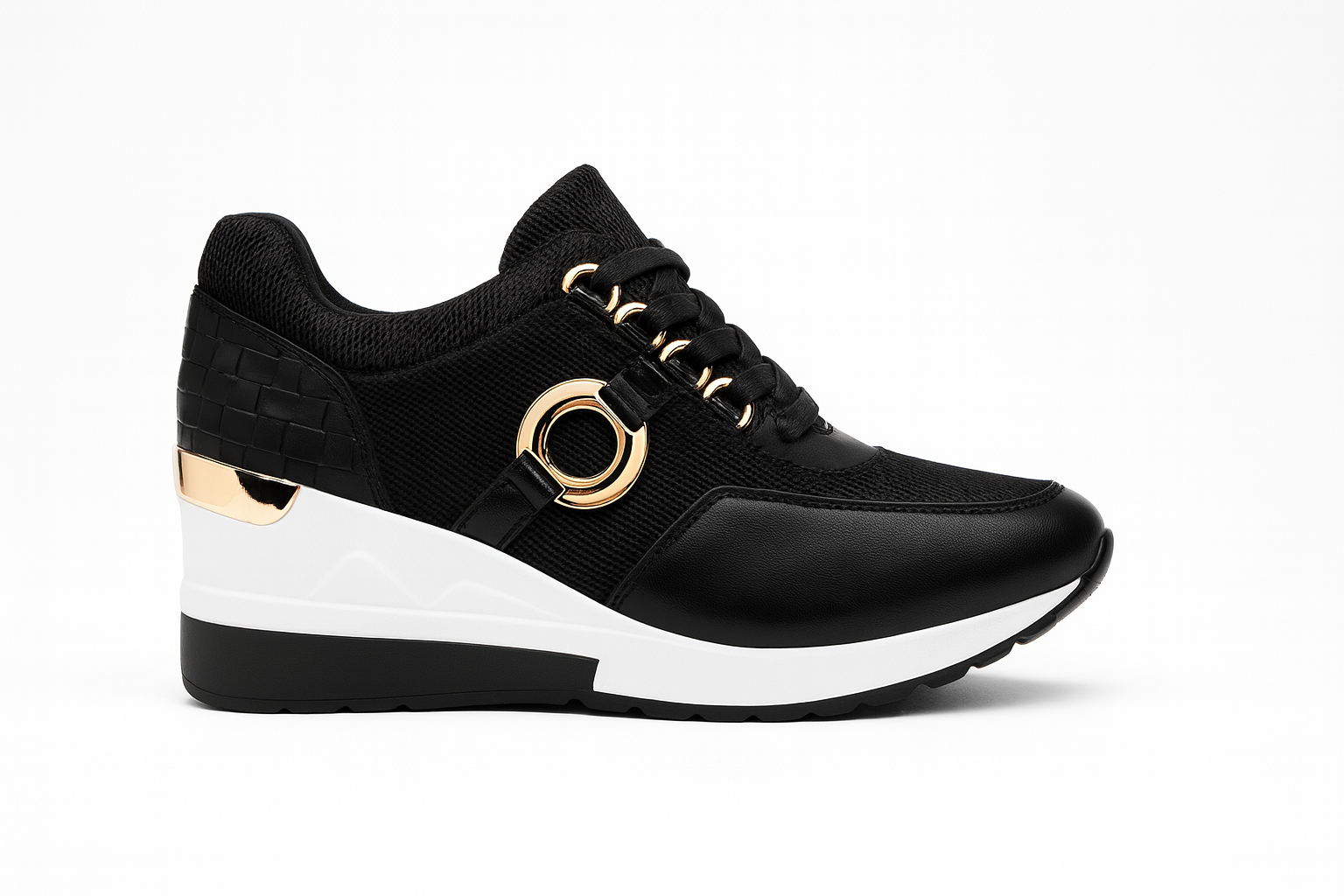 Deportivas mujer negra y blanca con cuña