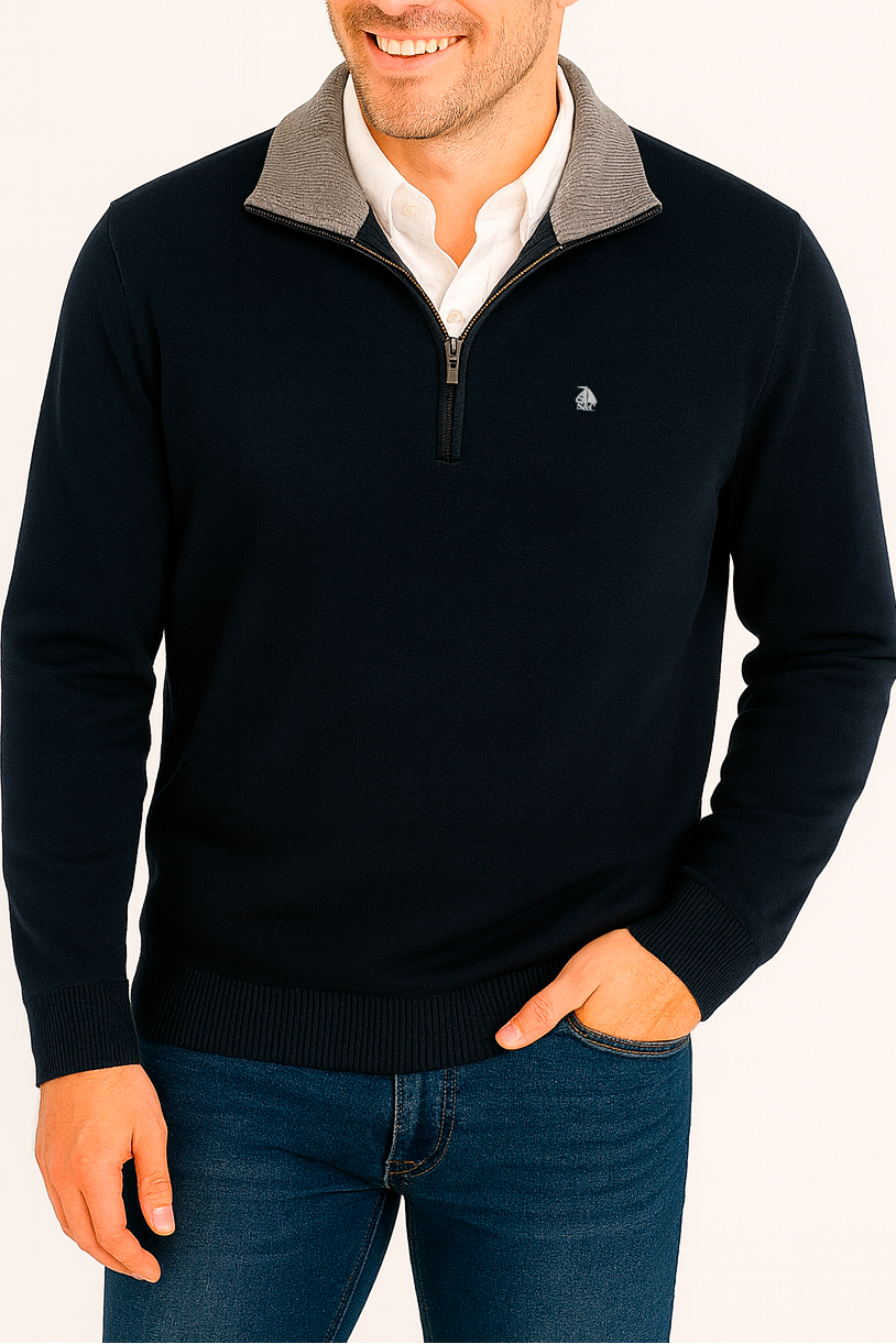 Este elegante jersey de hombre es ideal para un estilo casual con un toque clásico. Con su media cremallera combina comodidad y elegancia en una sola prenda. Su diseño versátil lo convierte en una excelente opción para el día a día o para ocasiones más formales.