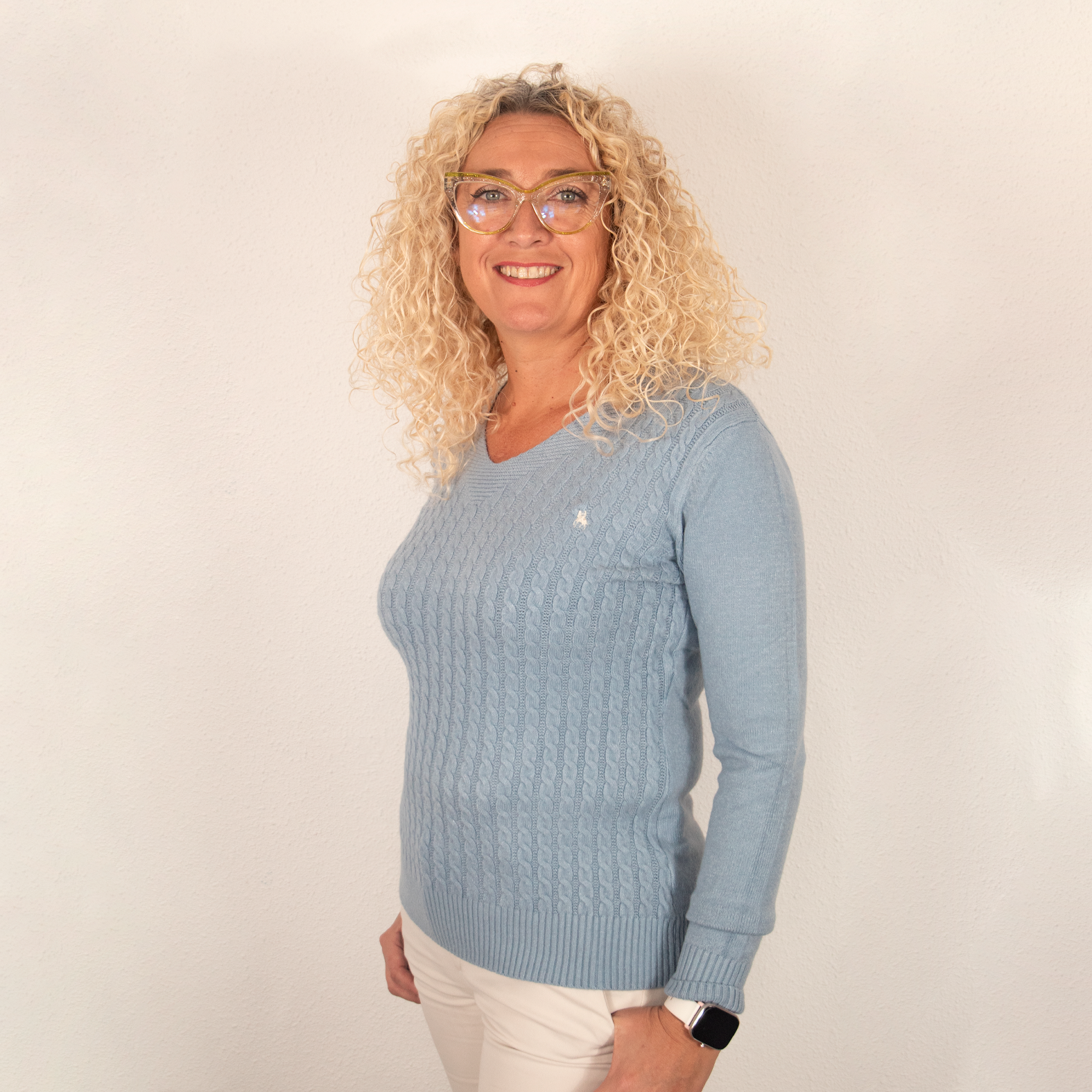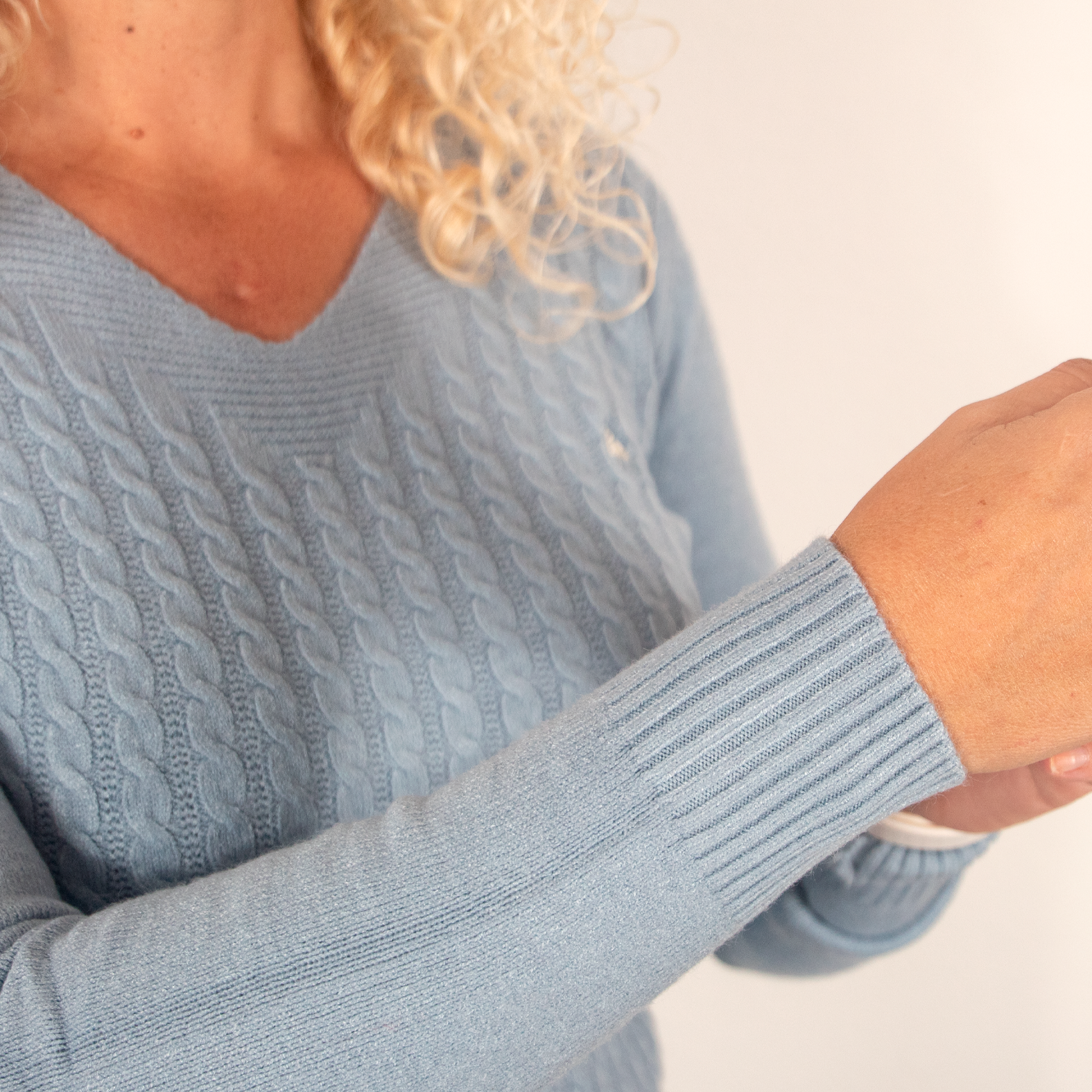 Jersey de Mujer Cuello Pico Trenzado Celeste