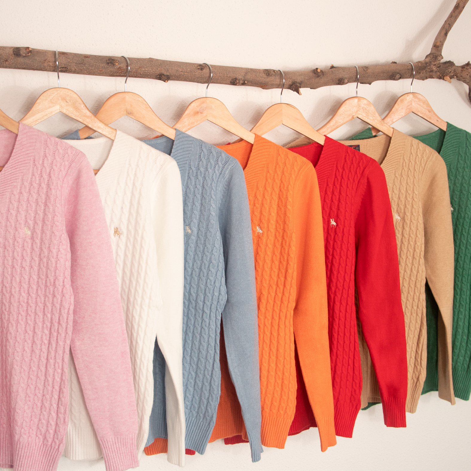 Descubre la comodidad y el estilo atemporal de nuestro jersey de mujer con cuello pico y elegante diseño trenzado. Confeccionado en tejido suave y de alta calidad, este jersey es perfecto para cualquier ocasión, desde looks casuales hasta combinaciones más formales. Disponible en 7 colores diferentes , ofrece versatilidad para cada gusto y estilo.