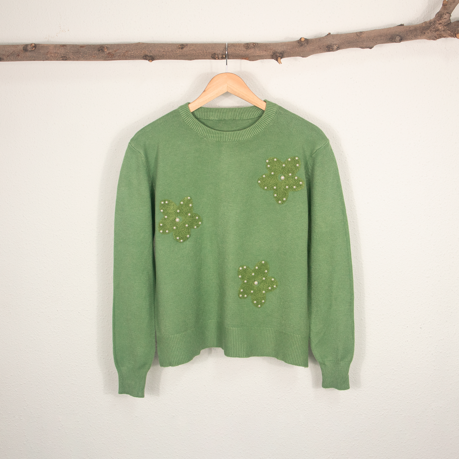 Jersey de Mujer de Manga Larga con Apliques de Flores y Detalles de Perlas