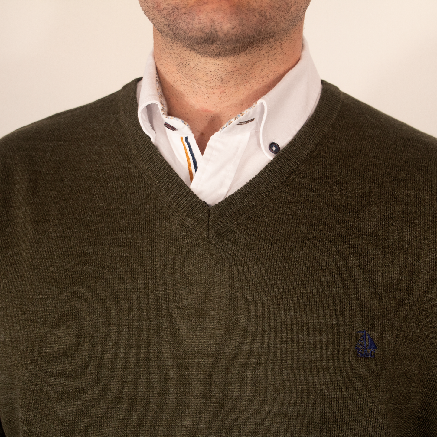 Su diseño clásico con cuello en V permite llevarlo solo o combinado con una camisa para un toque más sofisticado. Ideal para cualquier ocasión, desde el trabajo hasta una salida informal, este jersey es una opción versátil que no puede faltar en tu armario.
