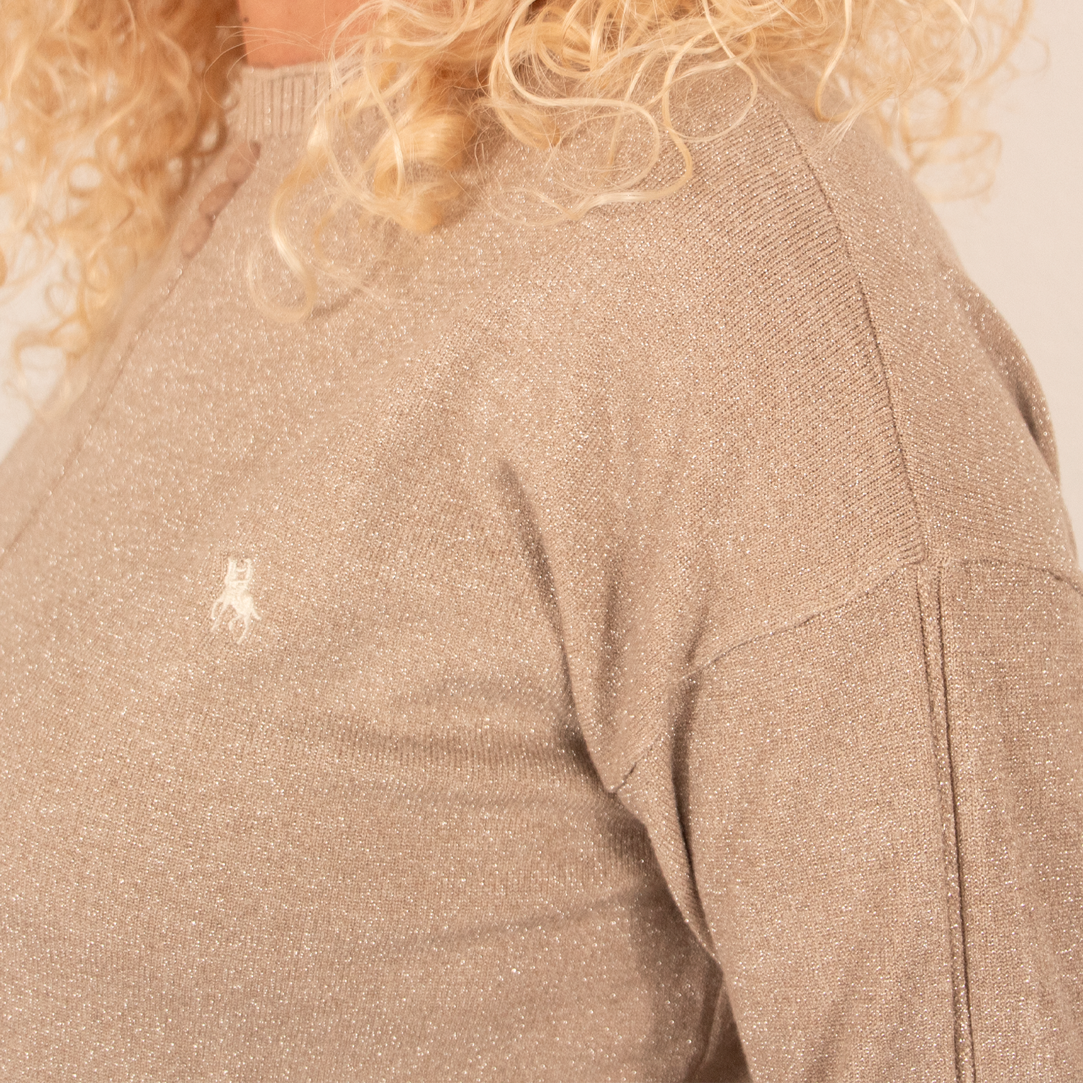 Jersey Mujer Beige Destellos con Detalles de Botones