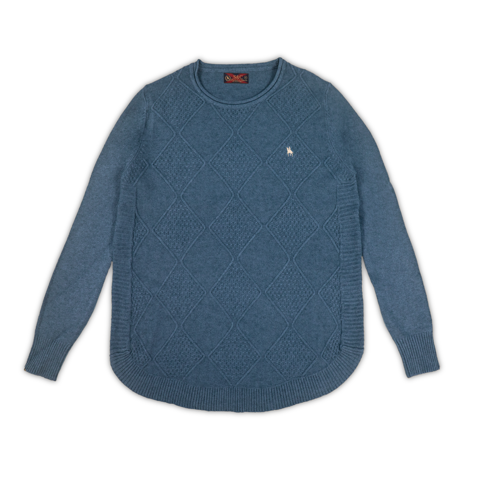 Este jersey no solo destaca por su bonito patrón de rombos, sino también por sus detalles acanalados en los puños y el dobladillo, que le añaden un toque moderno. Perfecto para llevar en cualquier temporada, es una prenda imprescindible para tu armario. Disponible en varias tallas para garantizar el mejor ajuste.