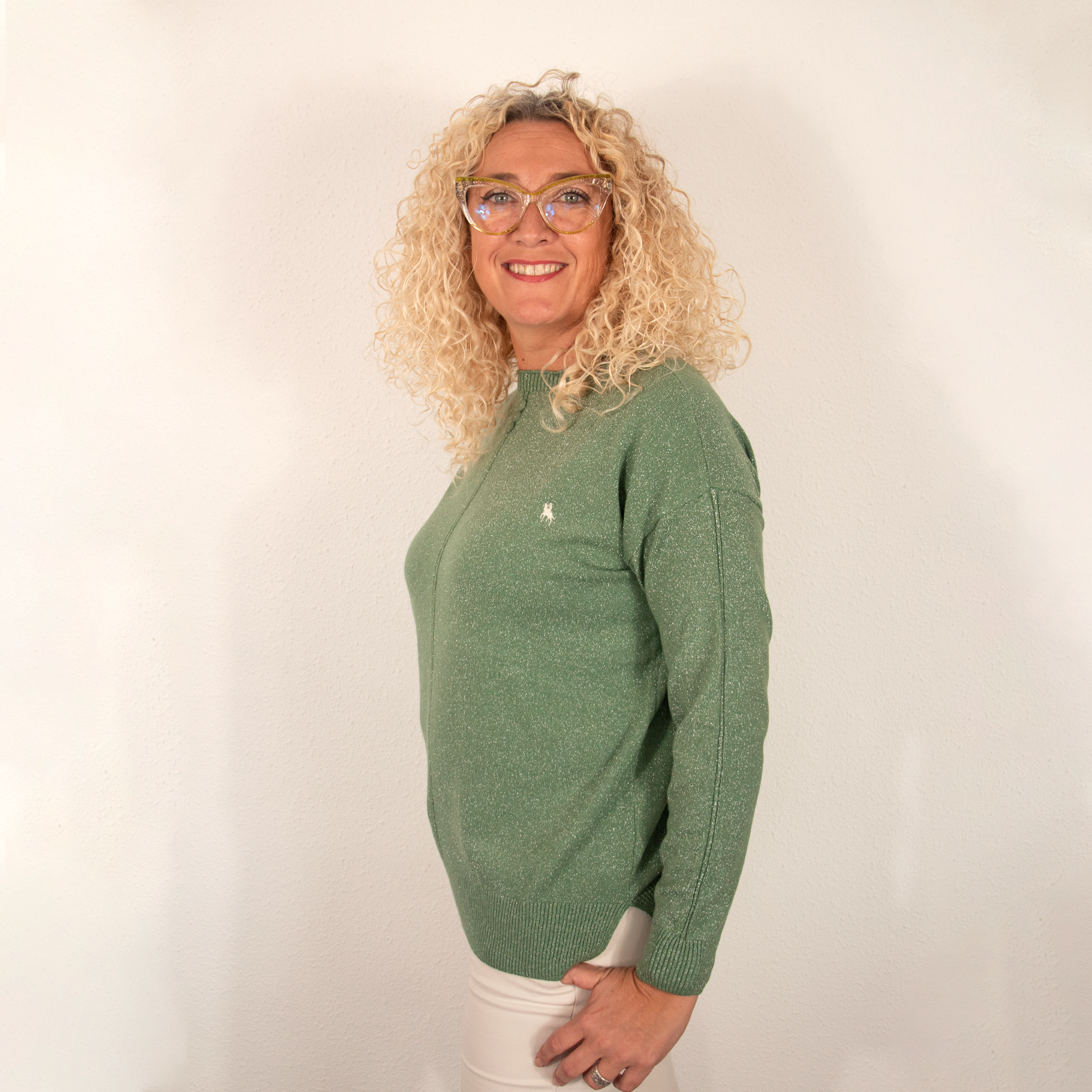Jersey Mujer Verde Destellos con Detalles de Botones