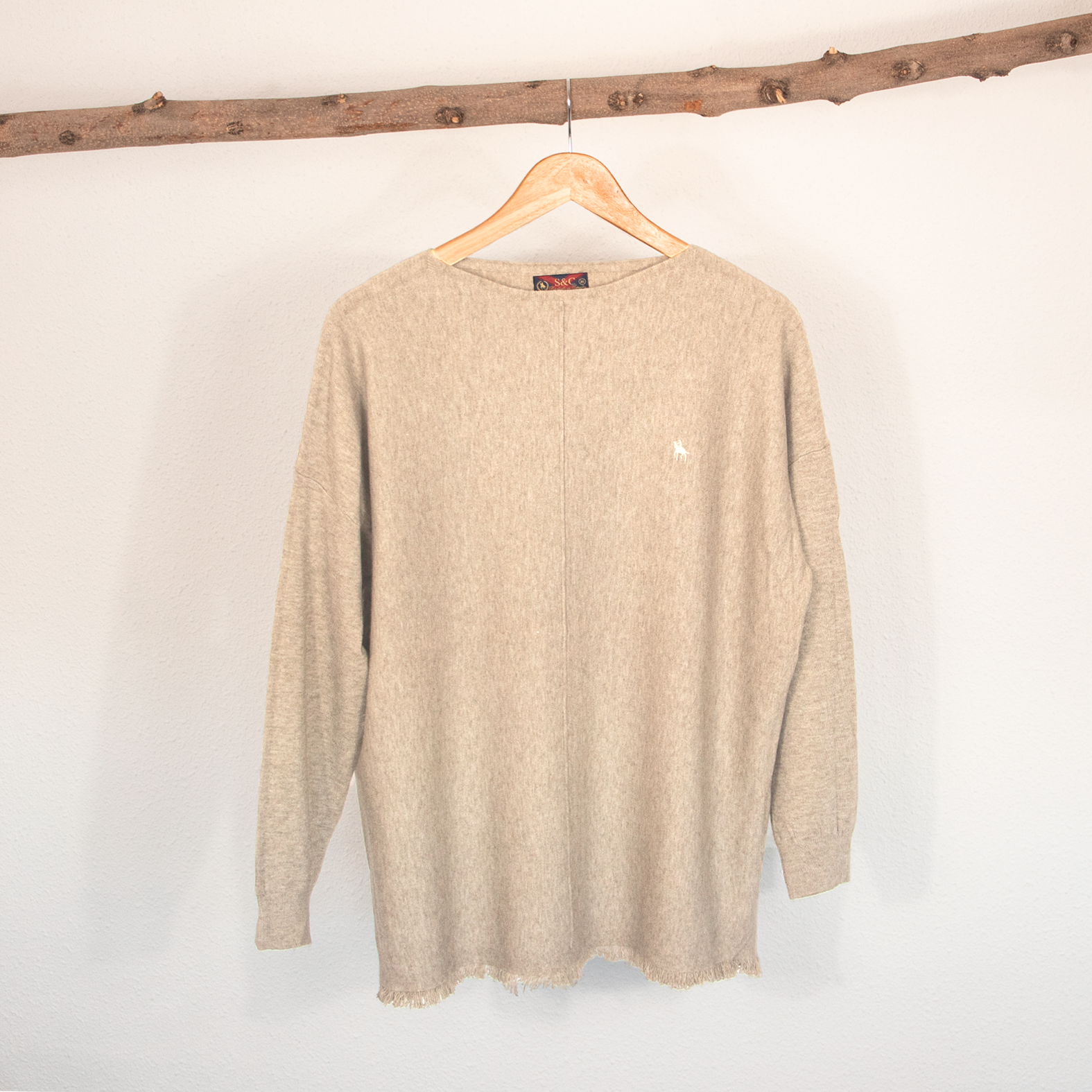 Confeccionado en tejido suave y cómodo, este jersey de punto presenta un corte relajado que ofrece una caída natural sobre el cuerpo, proporcionando tanto confort como estilo.