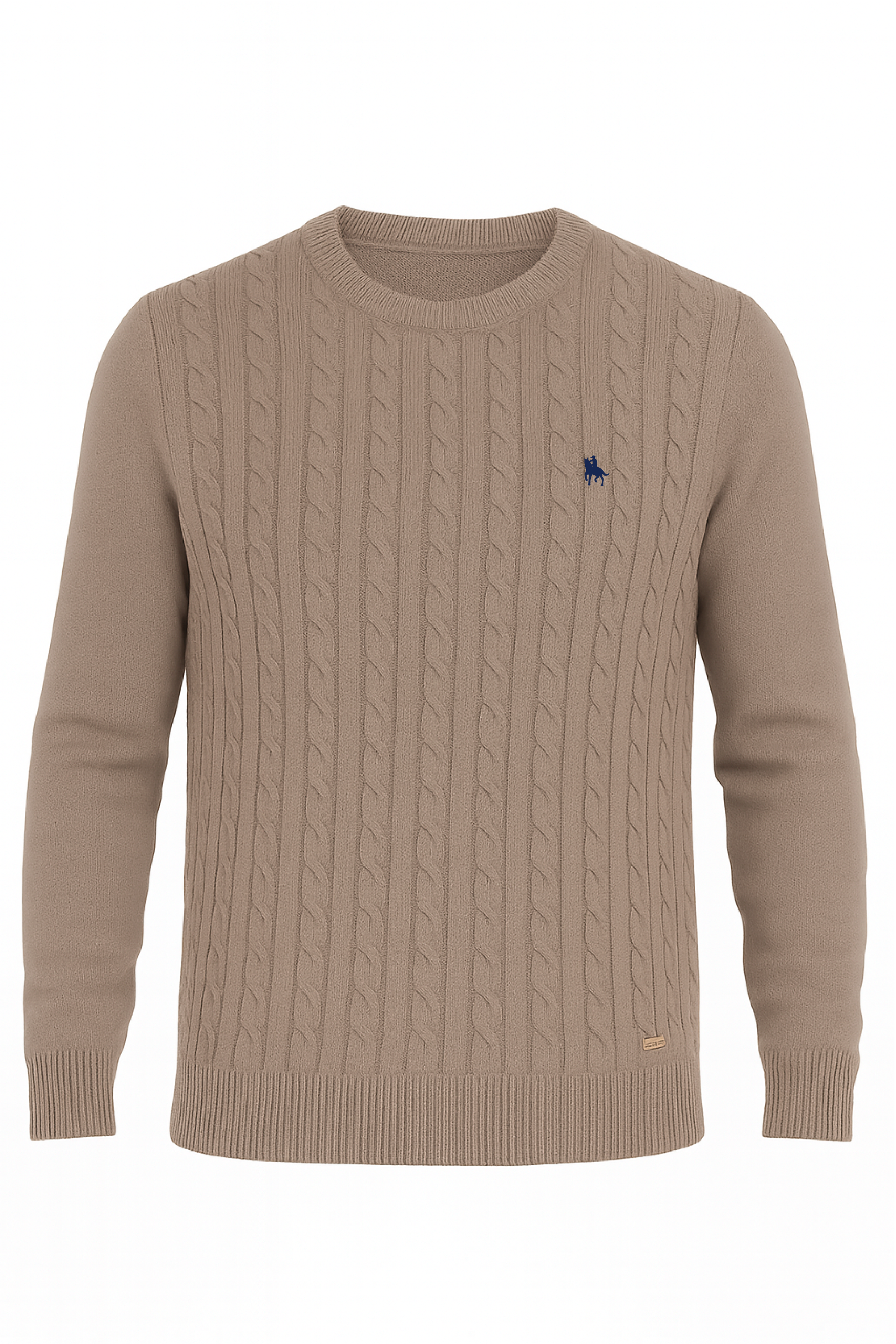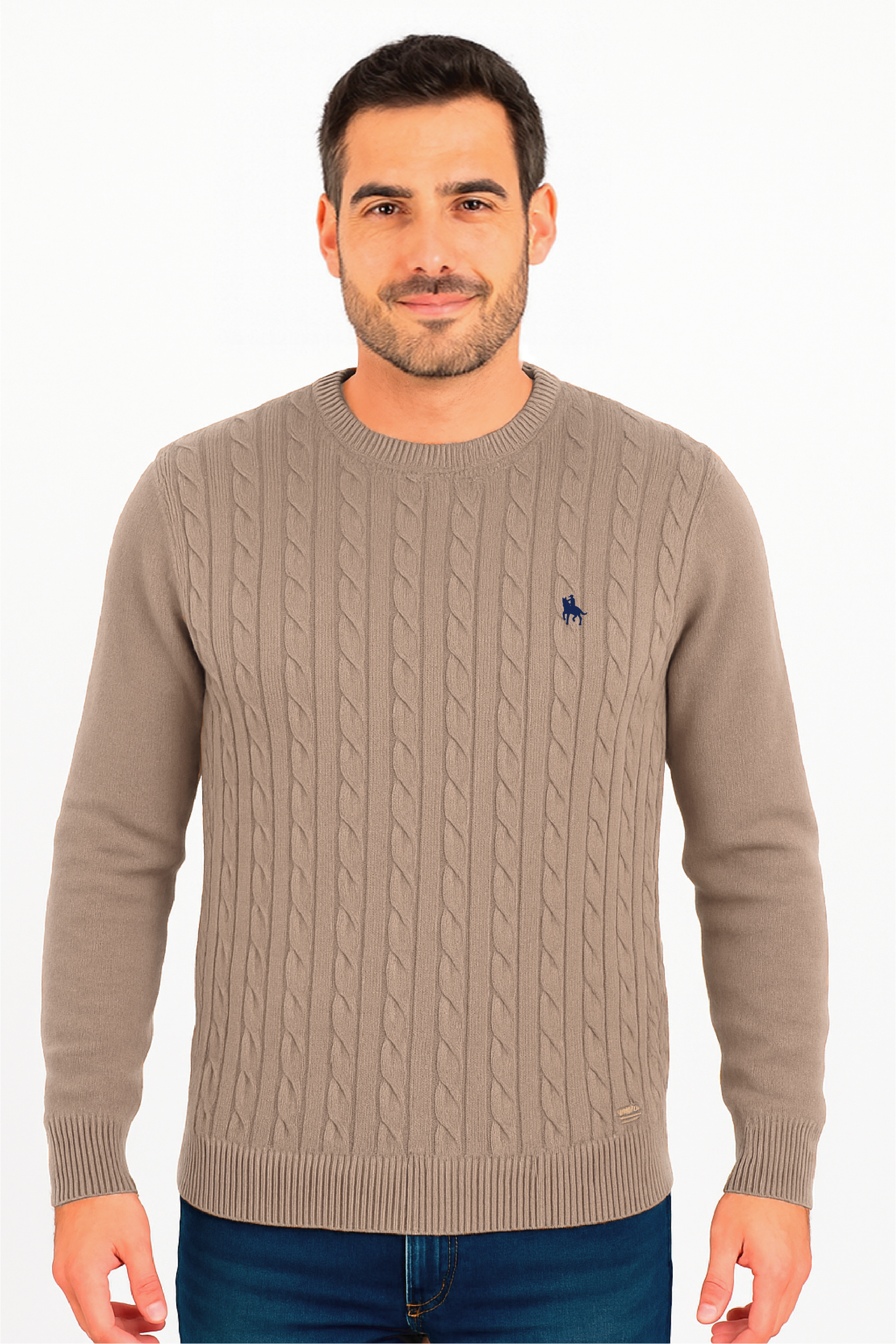 Fabricado con materiales de alta calidad, es suave al tacto y ofrece un excelente aislamiento térmico, perfecto para los días más frescos. Su diseño clásico, con cuello redondo y ajuste relajado, lo convierte en una opción versátil para cualquier ocasión, ya sea para un look casual o algo más formal.